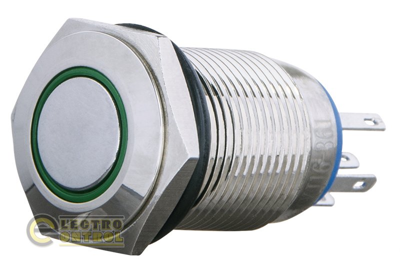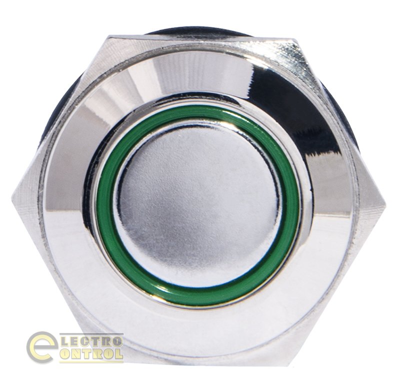 Кнопка Аско-Укрем A0140010099 TYJ 16-361 металлическая плоская с фиксацией 1NO+1NC с подсветкой зелёная 220V