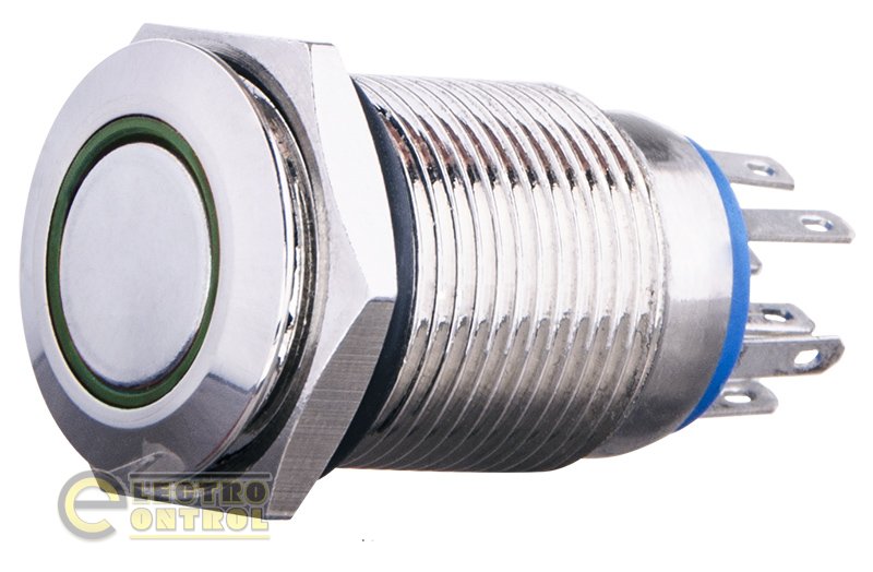 Кнопка Аско-Укрем A0140010102 TYJ 16-362 металлическая плоская с фиксацией 2NO+2NC с подсветкой зелёная 220V