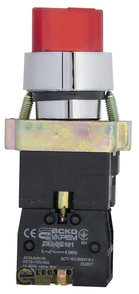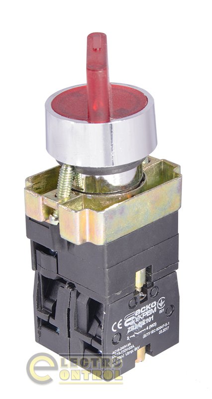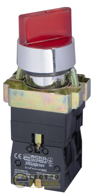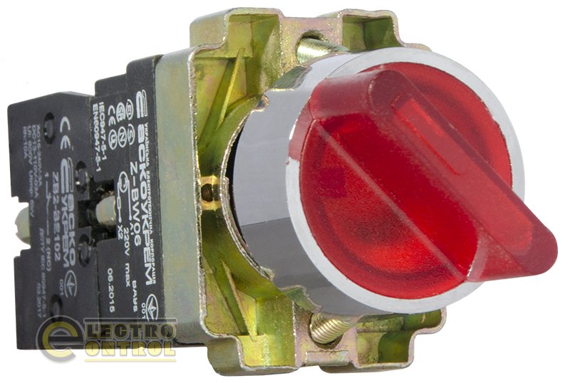 Кнопка Аско-Укрем A0140010067 XB2-BK2465 красная поворотная 2-поз. с подсветкой