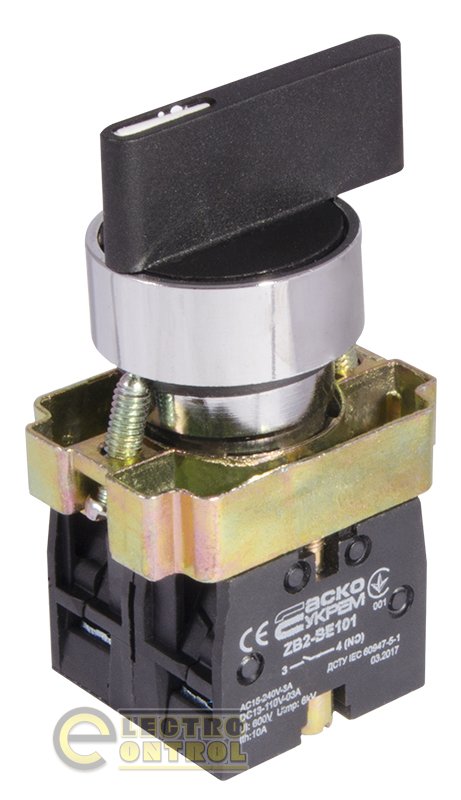 Описание Кнопка Аско-Укрем A0140010046 XB2-BJ53 поворотная 3-поз. с самовозвратом удлинённая ручка
