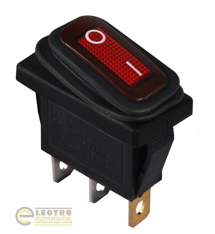 Переключатель Аско-Укрем A0140040036 KCD3-101NW R/B 220V 1 клавишный вологозах красный с подсветкой