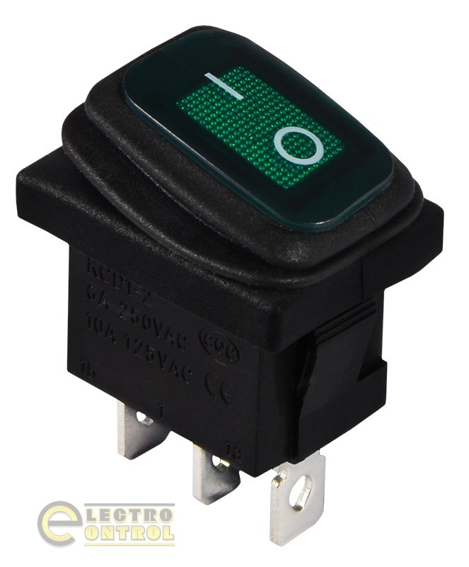 Переключатель Аско-Укрем A0140040059 KCD1-2-101NW GR/B 220V 1 клавишный влагозащитный зелёный с подсветкой