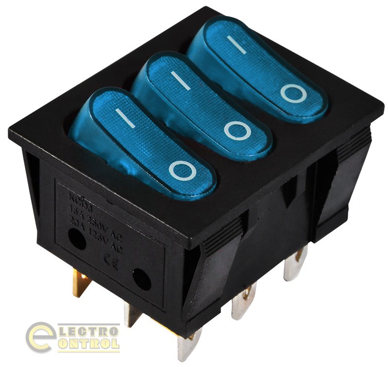 Переключатель Аско-Укрем A0140040122 KCD2-3101N C3-BL/B 220V 3 клав. синий с подсветкой