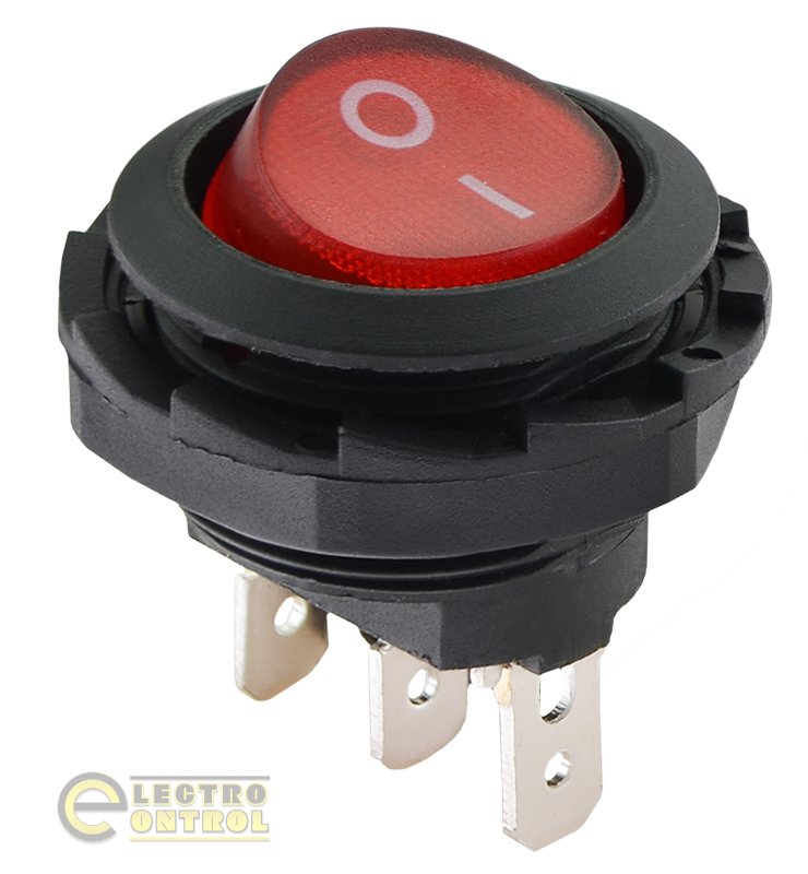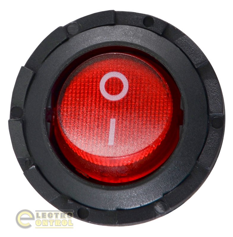 Переключатель Аско-Укрем A0140040136 KCD1-7-101NY R/B 220V 1 клав. круглый красный с подсветкой