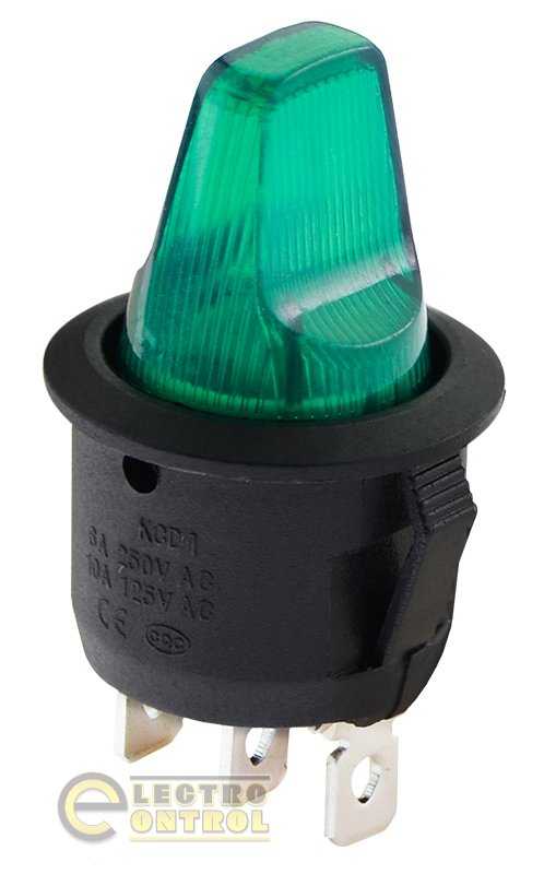 Переключатель Аско-Укрем A0140040142 KCD1-5-102H GR/B ON-ON 1 клав. высокий зелёный