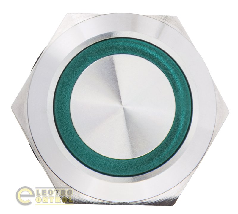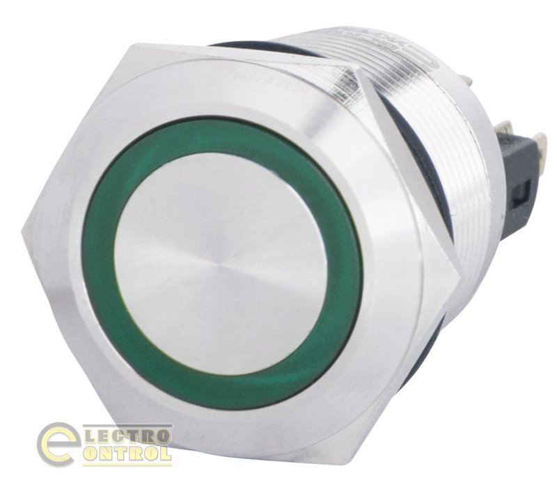 Кнопка Аско-Укрем A0140010141 TYJ 22-271 металлическая плоская с подсветкой 1NO+1NC зелёная 24V