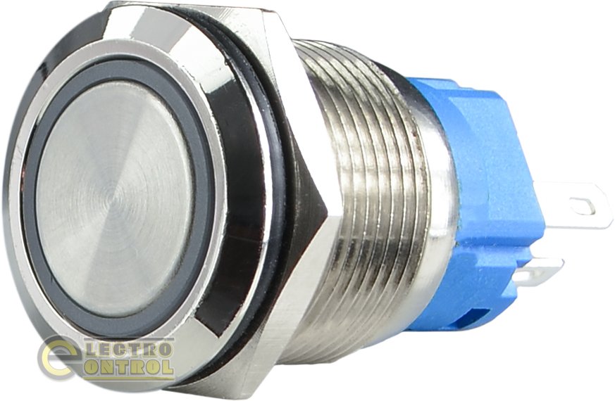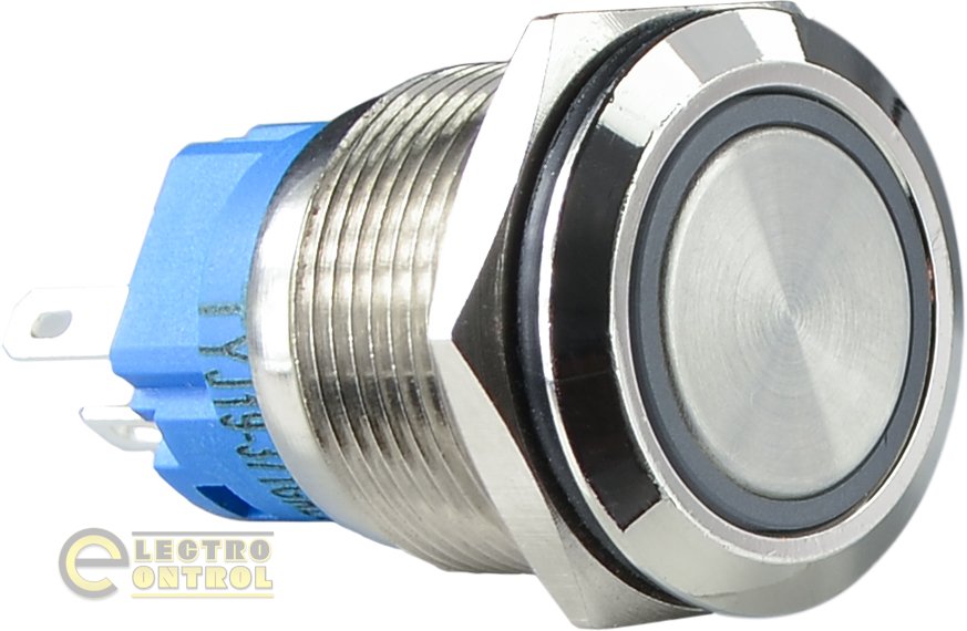 Кнопка Аско-Укрем A0140010119 TYJ 19-371 металлическая плоская с фиксацией 1NO+1NC с подсветкой зелёная 220V