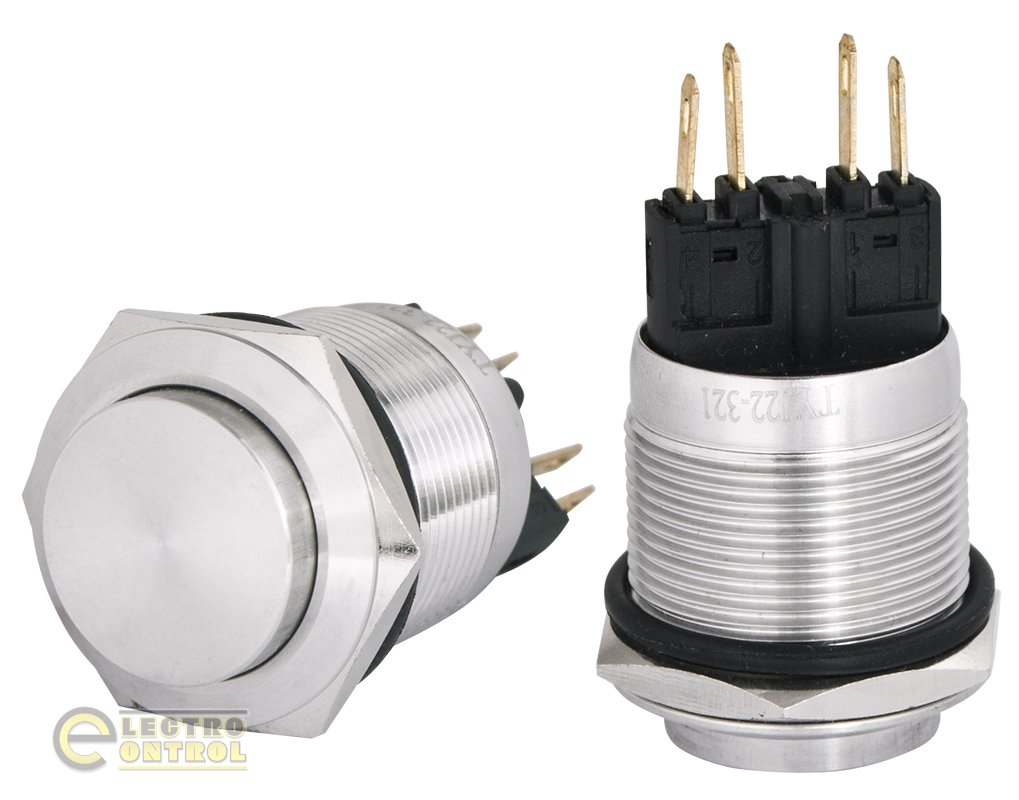 - Кнопка Аско-Укрем A0140010127 TYJ 22-321 металлическая с выступом с фикс. 1NO+1NC-