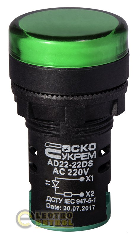 Сигнальная арматура Аско-Укрем A0140030045 AD22-22DS зелёная 220V АC