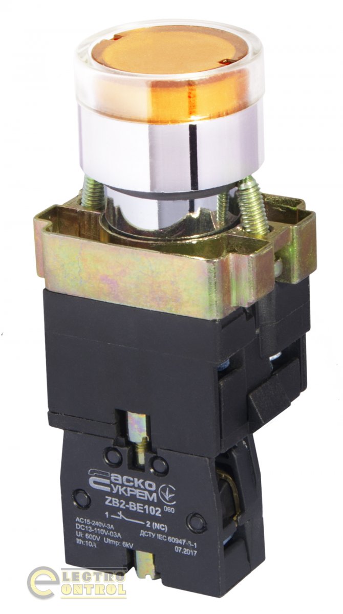 Кнопка Аско-Укрем A0140010053 XB2-BW3571 с подсветкой жёлтая
