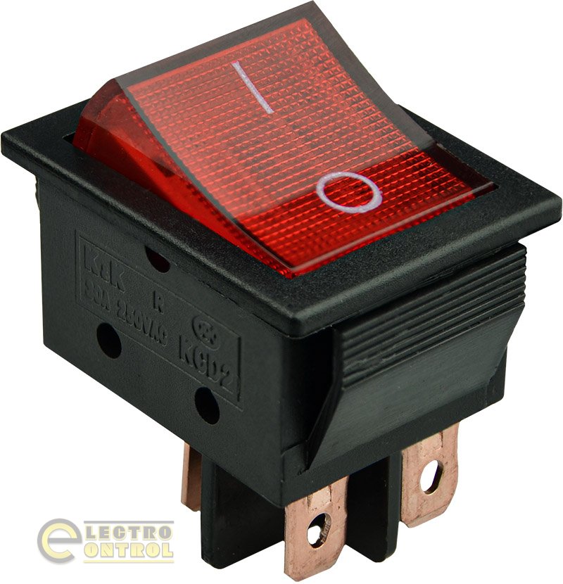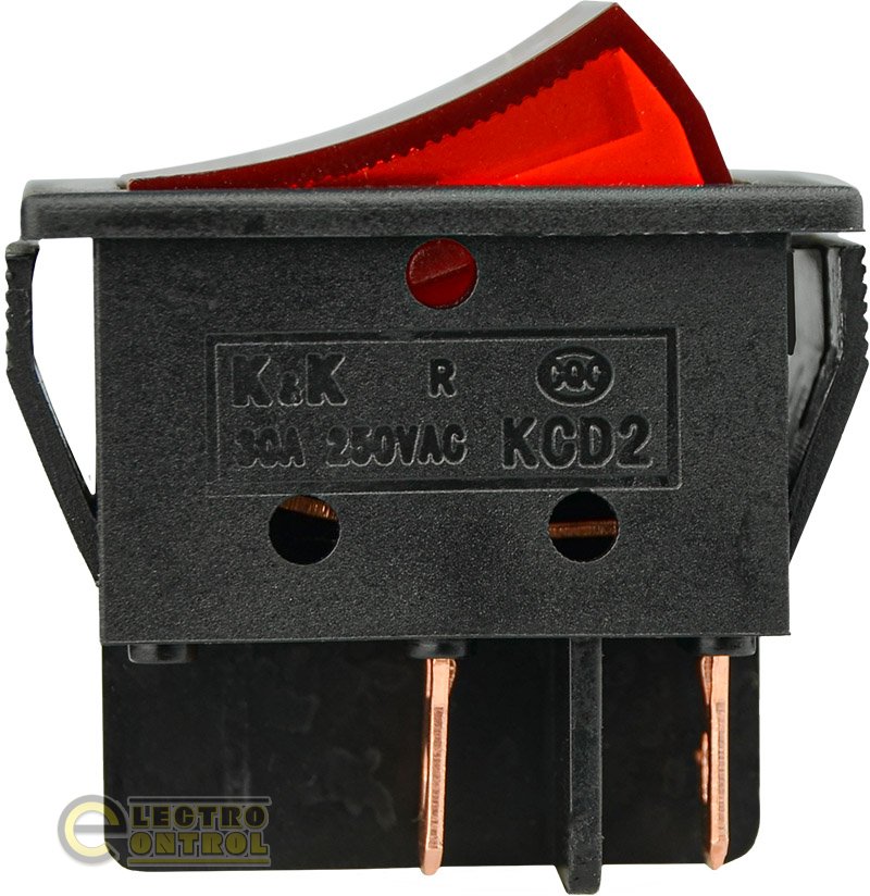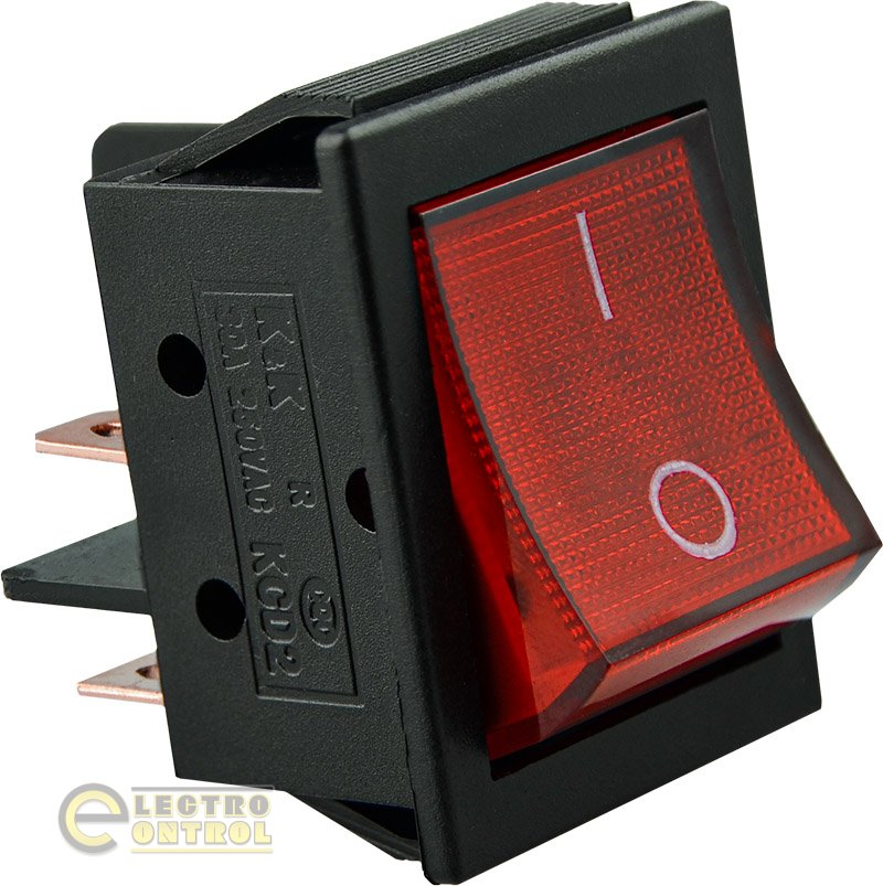 Переключатель Аско-Укрем KCD2-6-201N R/B 30 А 220V 1 клав. красный с подсветкой