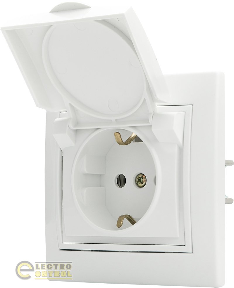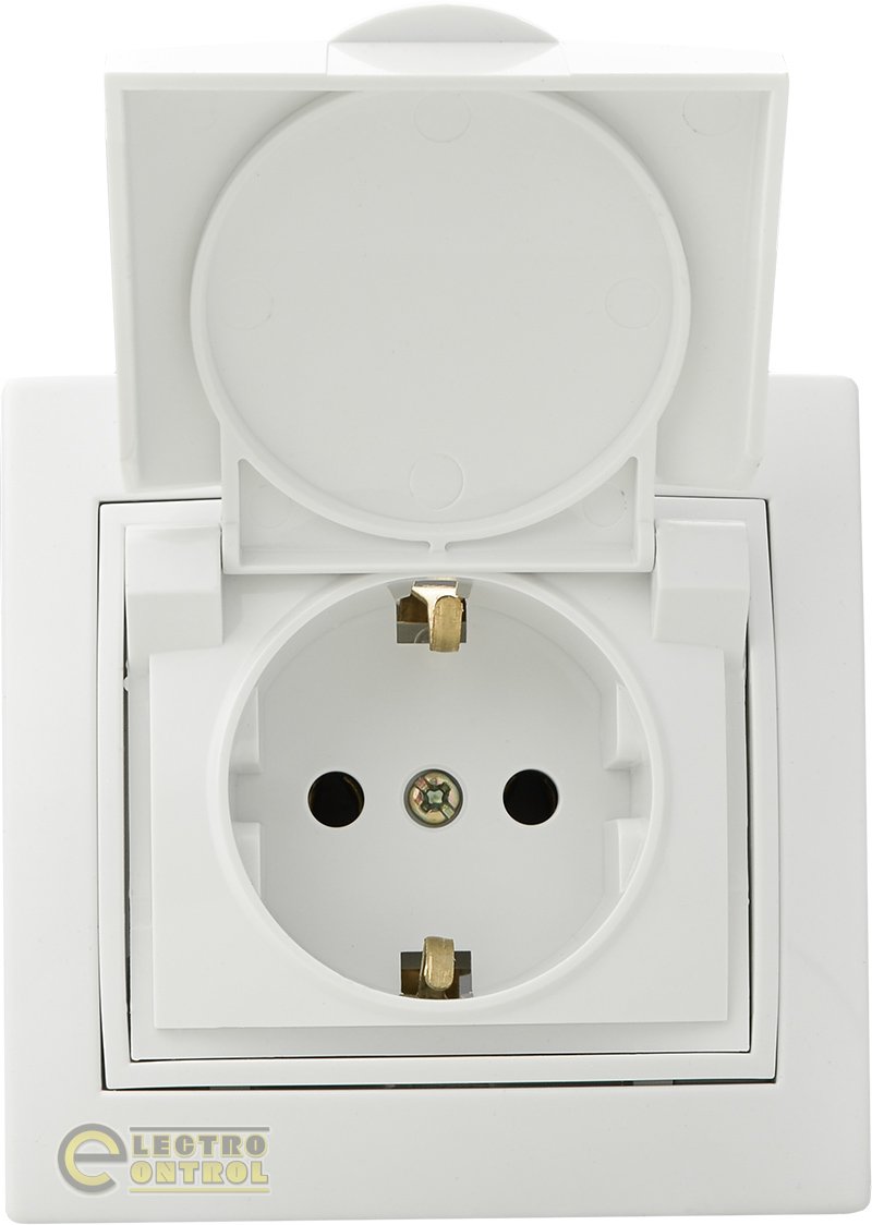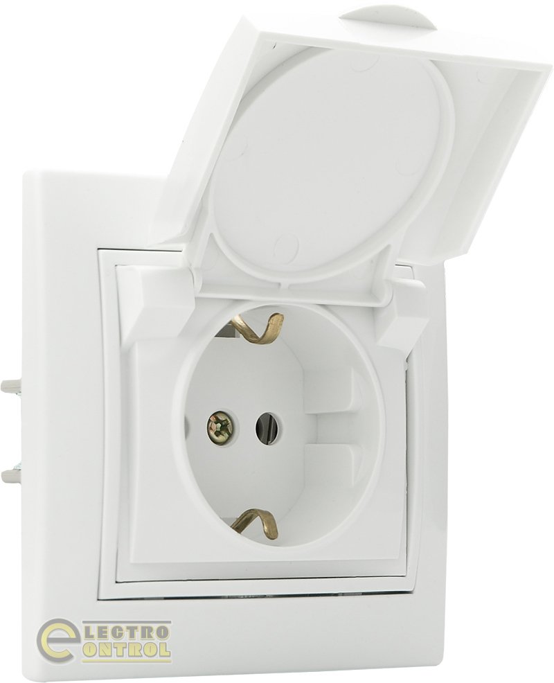 Розетка Аско-Укрем с крышкой 2Р+PE РВбсб16-З-Fl-W белая