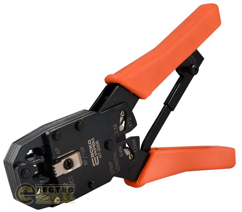 Предназначен для обжимания одножильных и многожильных сетевых кабелей коннекторами. Инструмент имеет также кусачки и устройство для зачистки проводов.