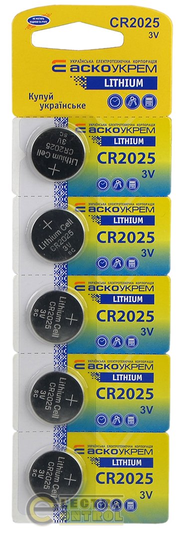 Батарейка литиевая Аско-Укрем CR2025.BP5 (блистер 5шт.)