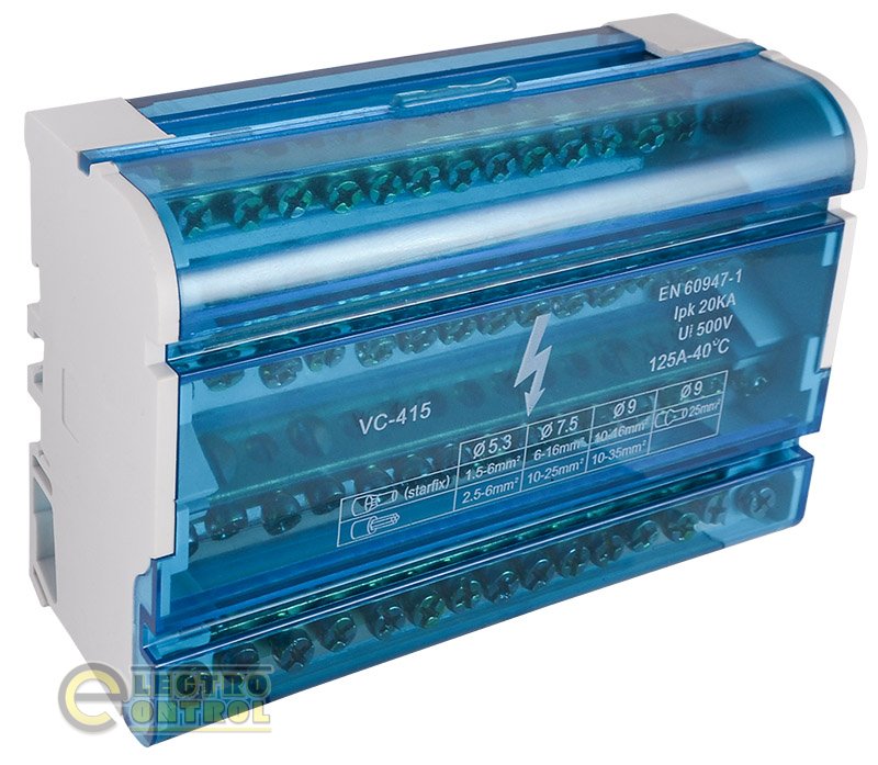 Нулевая шина Аско-Укрем A0150120022 в корпусе VC-415 4х15 (4 бруска по 15 отверстий)