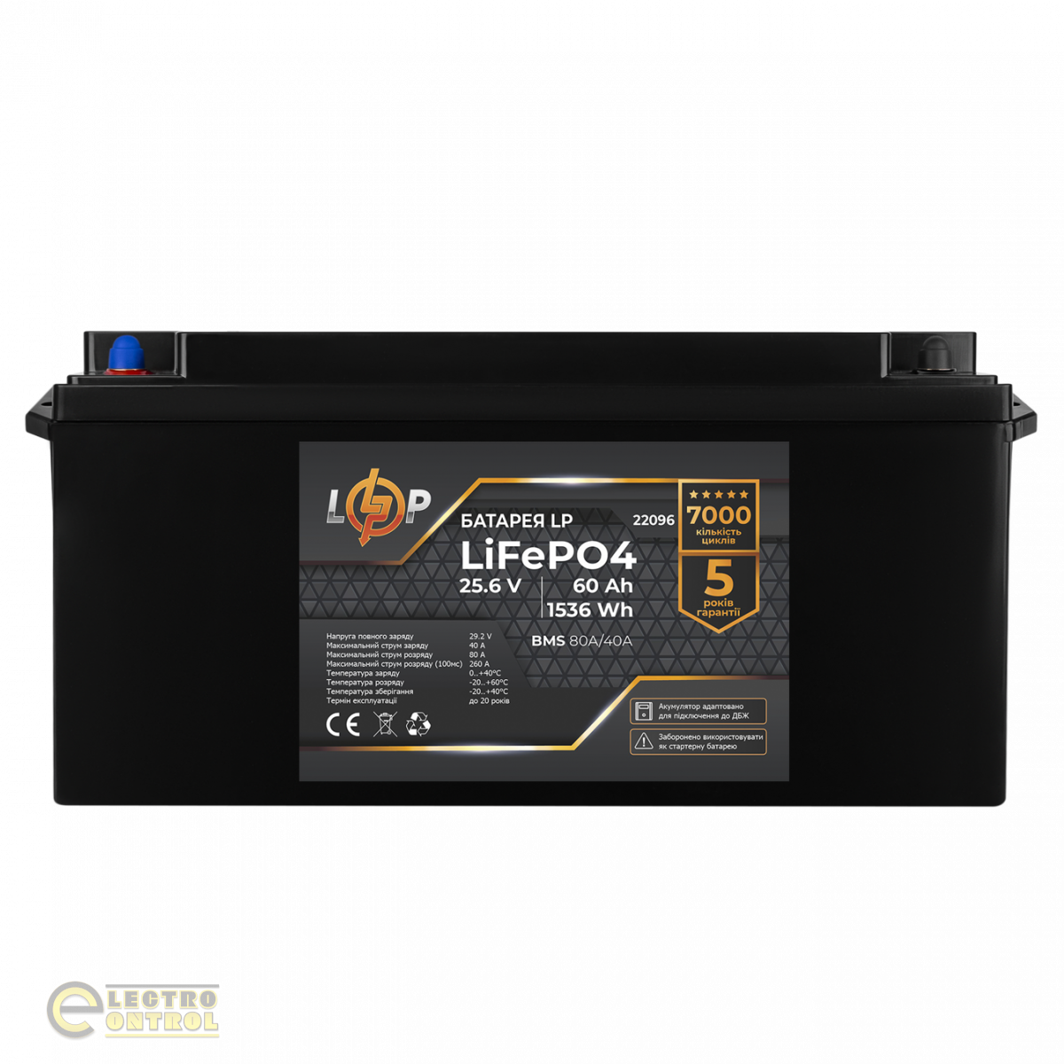 Аккумулятор LP LiFePO4 25,6V - 60 Ah (1536Wh) (BMS 80A/40А) пластик LCD для ИБП