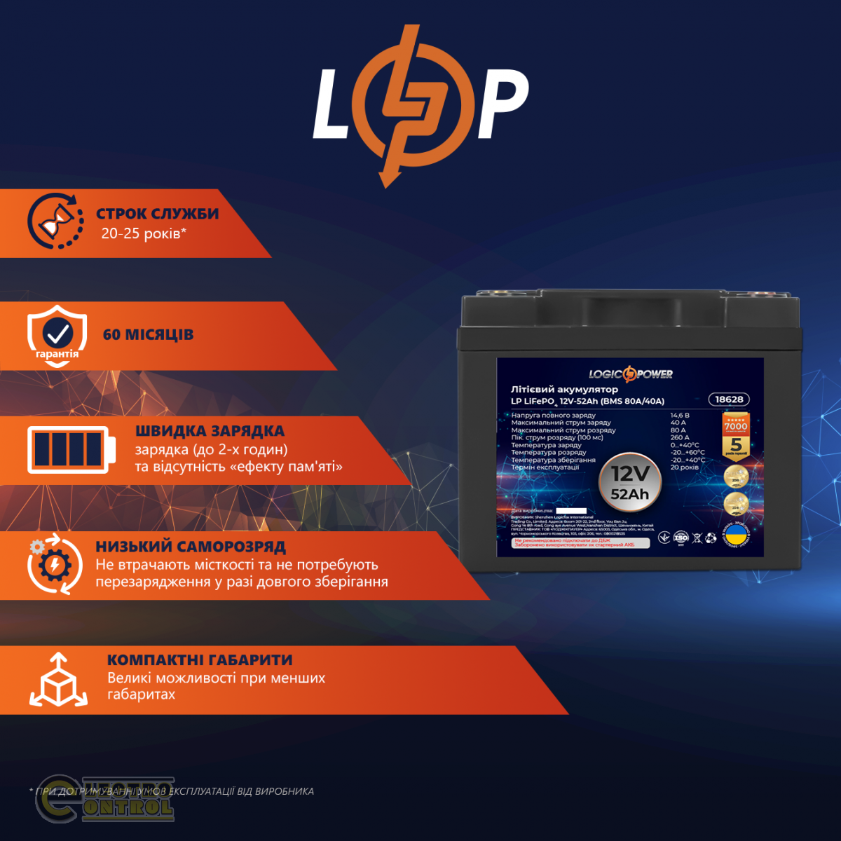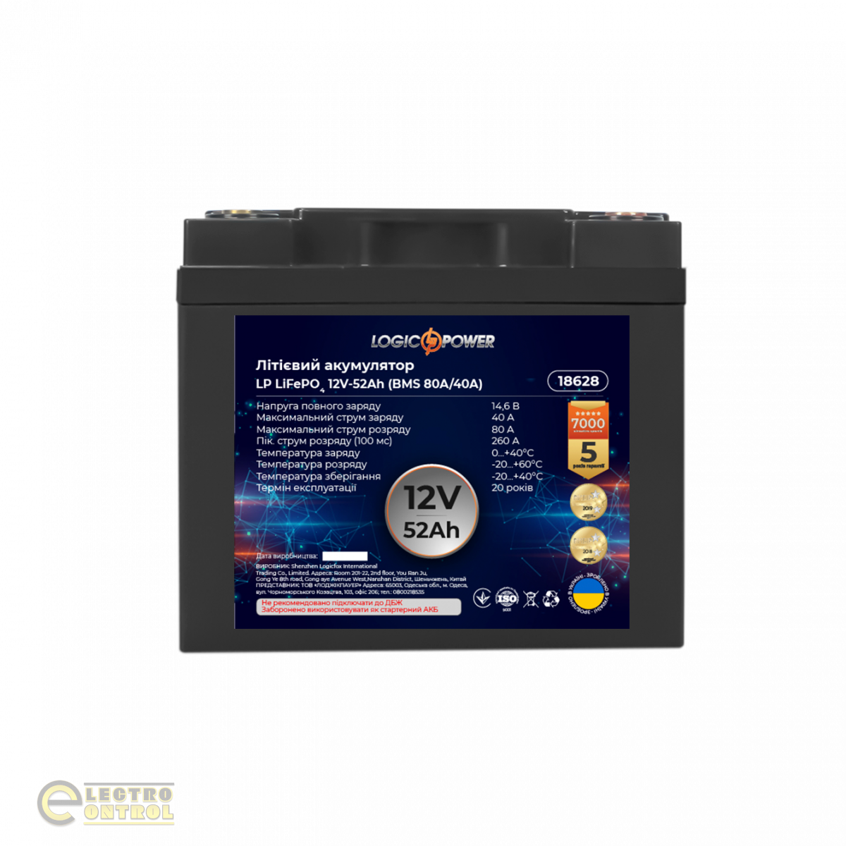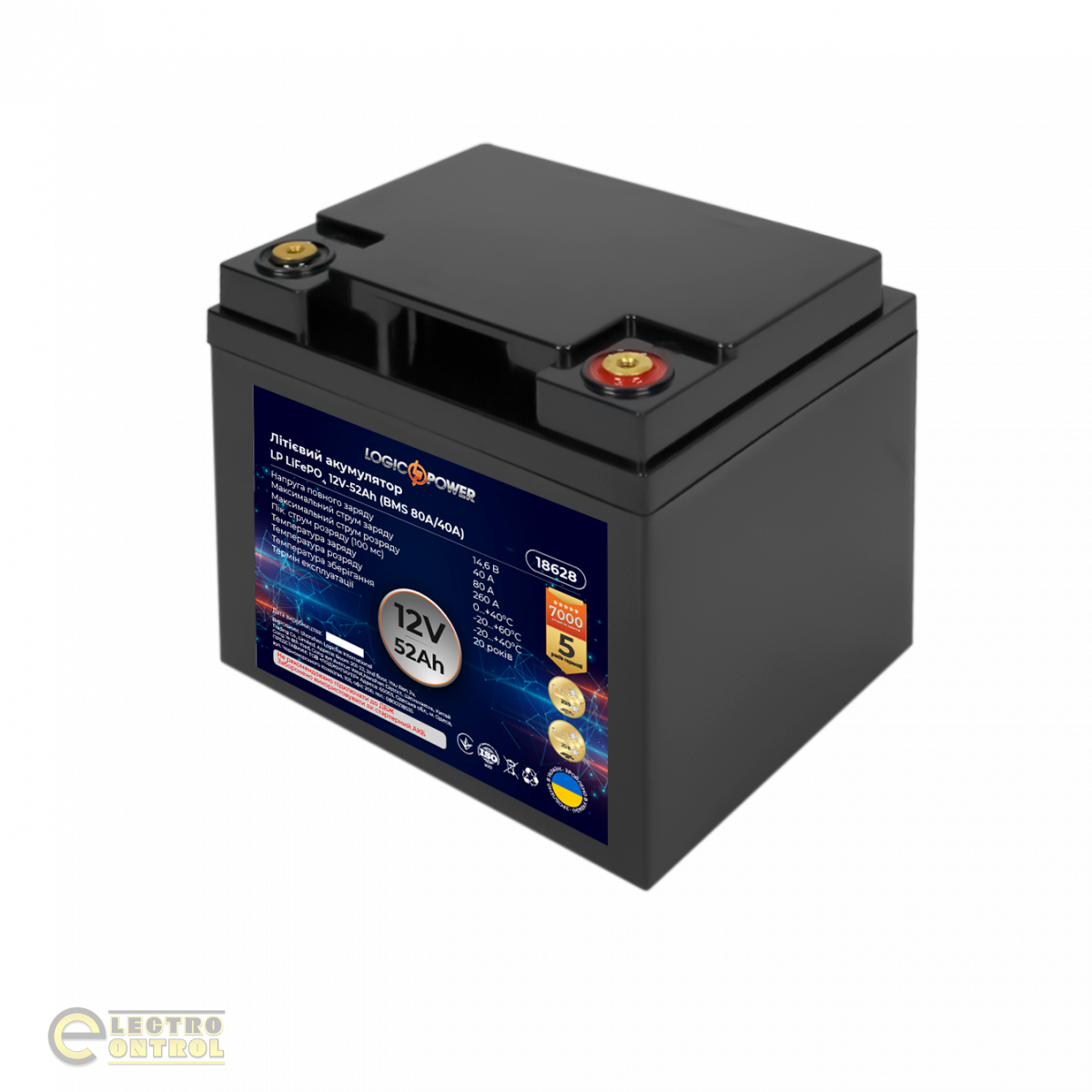 Аккумулятор LP LiFePO4 12V (12,8V) - 52 Ah (665Wh) (BMS 80A/40А) пластик