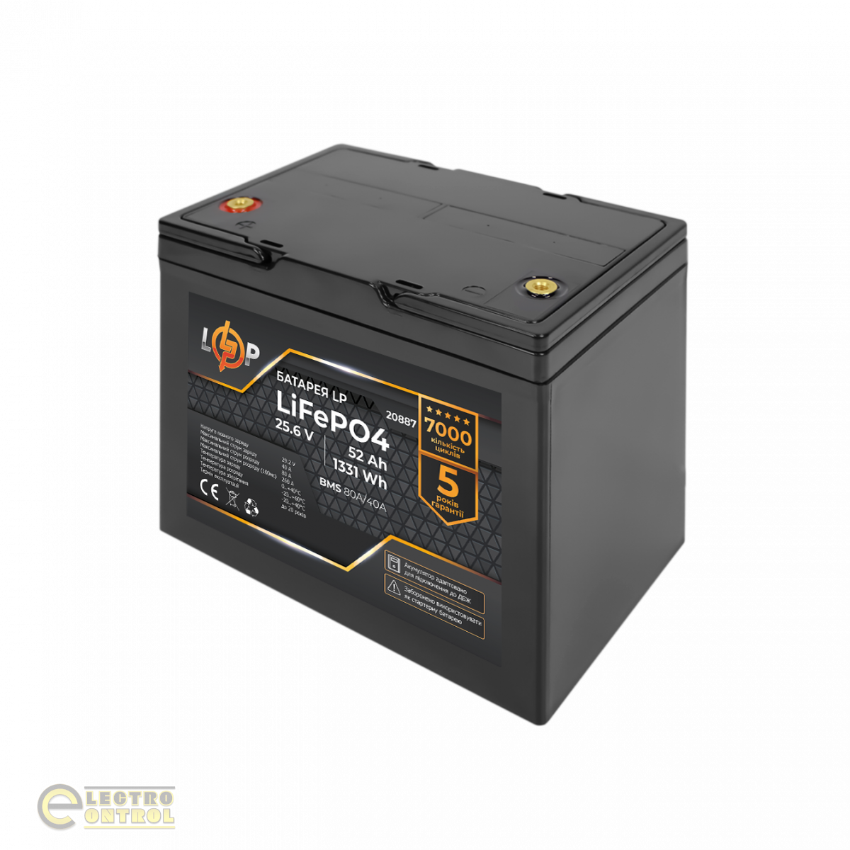 - Аккумулятор LP LiFePO4 для ИБП 24V (25,6V) - 52 Ah (1331Wh) (BMS 80A/40А) пластик-