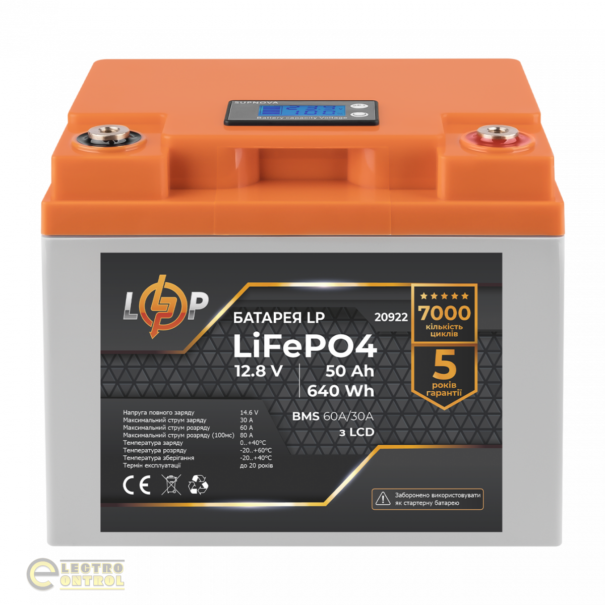 Аккумулятор LP LiFePO4 LCD 12V (12,8V) - 50 Ah (640Wh) (Smart BMS 60A/30А) пластик