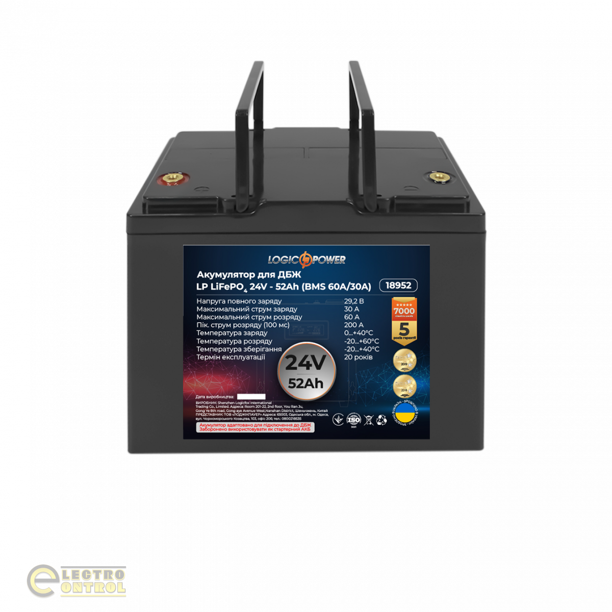 ВНИМАНИЕ! Аккумулятор 24V - 52 Ah (BMS 60A/30A) пластик для ИБП запрещено использовать в качестве стартерного АКБ в автомобилях и других транспортных средствах!