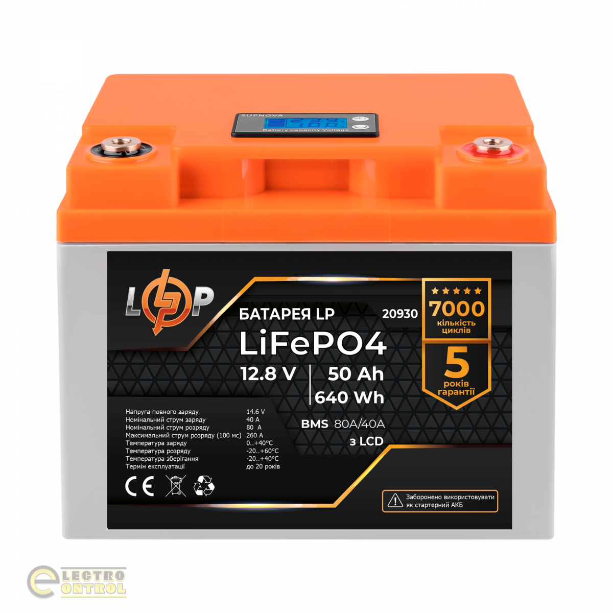 Аккумулятор LP LiFePO4 LCD 12V (12,8V) - 50 Ah (640Wh) (BMS 80A/40А) пластик