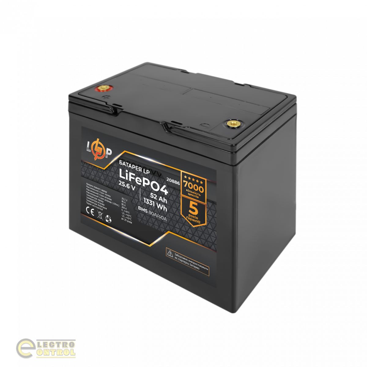 Аккумулятор LP LiFePO4 24V (25,6V) - 52 Ah (1331Wh) (BMS 80A/40А) пластик