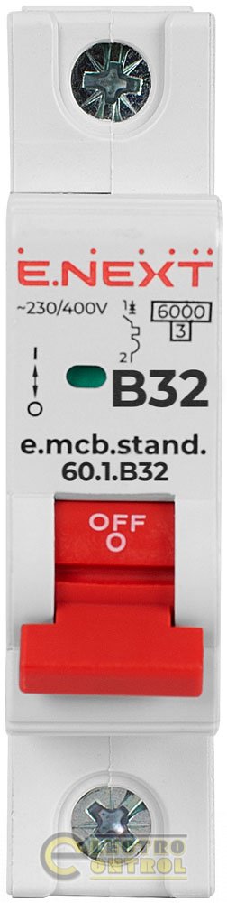 Для промышленных и бытовых применений могут быть использованы модульные автоматические выключатели Enext. Они могут защищать цепи переменного тока напряжением от перегрузки и коротких замыканий (токов короткого действия), также имеют возможность оперативного включения/выключения их на объектах любой площади. Выключатель Enext серий - e.mcb.stand.60 спроектирован для работы с номинальными токами до 6кА, категория срабатывания: B, число полюсов: однополюсный 1р артикул: s001112, отключающая способность: 6кА