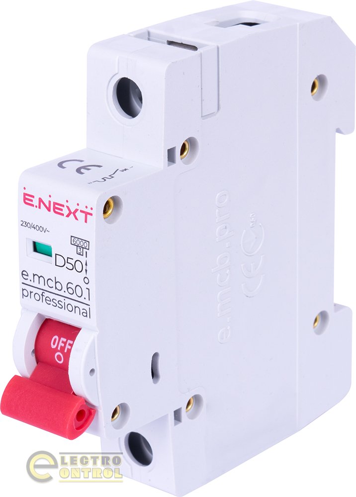 Для промышленных и бытовых применений могут быть использованы модульные автоматические выключатели Enext. Они могут защищать цепи переменного тока напряжением от перегрузки и коротких замыканий (токов короткого действия), также имеют возможность оперативного включения/выключения их на объектах любой площади. Выключатель Enext серий - e.mcb.pro.60 спроектирован для работы с номинальными токами до 6кА, категория срабатывания: D, число полюсов: однополюсный 1р артикул: p0710022, отключающая способность: 6кА
