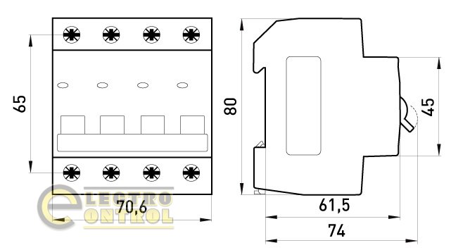 Конструкция черирехполюсного 4р выключателя e.mcb.stand.45.4.В16