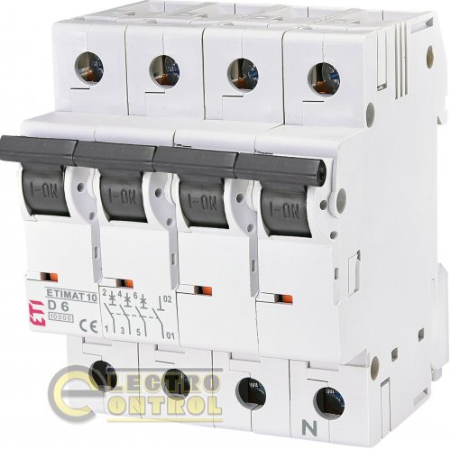 Серия автоматических выключателей с функцией защиты от токов короткого замыкания ETIMAT 10 3P+N D 6А предназначена для использования в бытовых и коммунальных электросетях, а также в распределительных щитах, шкафах управления и т.п. промышленных потребителях небольшой мощности.