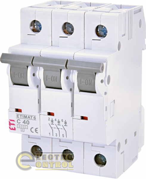 Особенности автоматического выключателя ETIMAT 6 3p C 40А (6 kA) ETI 2145520 такие: