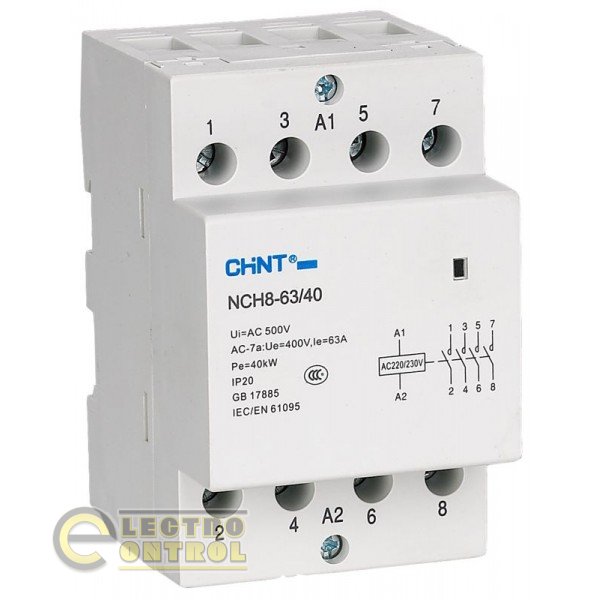 Модульные контакторы NCH8 предназначены для коммутации электрических цепей переменного тока частотой 50 Гц напряжением 230/400 В на промышленных и бытовых объектах.