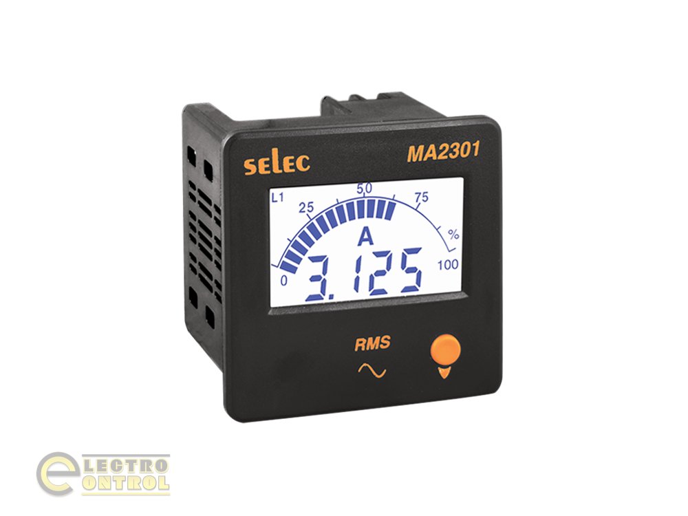 - Цифровой амперметр Selec MA2301-230V-CE LCD 3ф 240В 72x72 мм IP51 монтаж на панель-