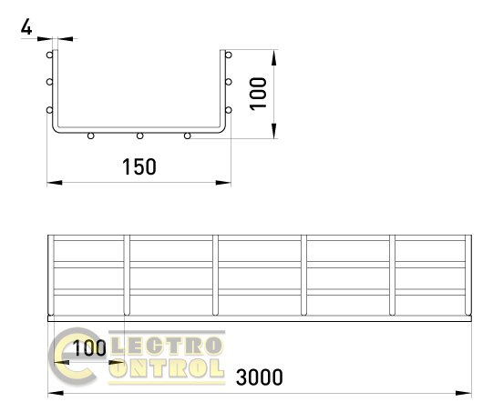 Лоток проволочный 150х100 4.0 мм, длина 3 м прямой элемент кабельной трассы