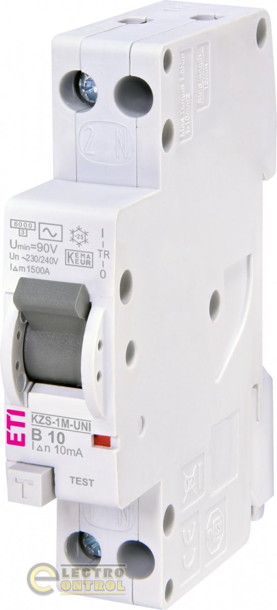 Дифференциальный автоматический выключатель ETI KZS-1M UNI B 10/0,01 AC 6kA универсальное подключение 2176102