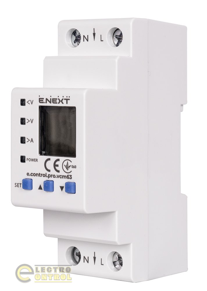 Реле контроля напряжения и тока однофазное 63А с индикацией Enext e.control.pro.vcm63 p0690103