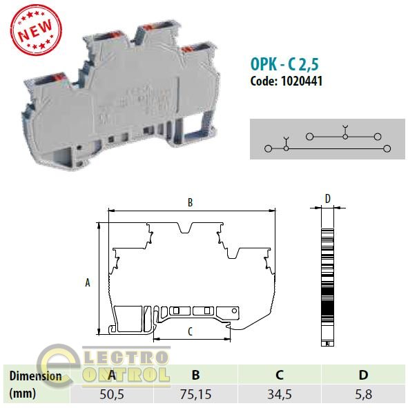 Клемма ONKA пружинная двухуровневая 2,5 мм2 серый 1020441