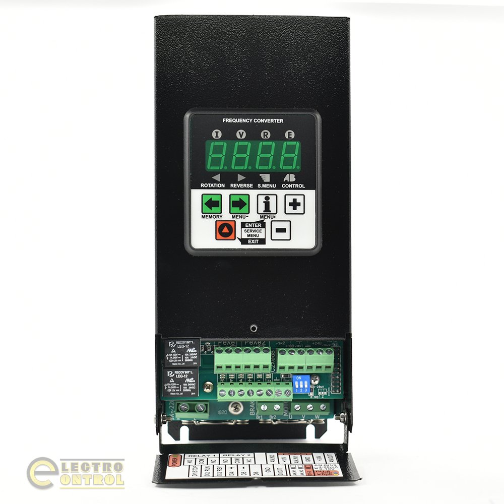 Преобразователь имеет двухуровневое меню настройки с групповым функциональным разделением, что позволяет легко и быстро настроить преобразователь под конкретные требования технологического процесса. Наличие съемной, брызгозащищенной, передней панели с регулируемой по яркости светодиодной индикацией позволит выполнить монтаж преобразователя внутри силового шкафа с последующим дистанционным вынесением панели преобразователя на дверцу шкафа или пульт оператора с различными эксплуатационными условиями.