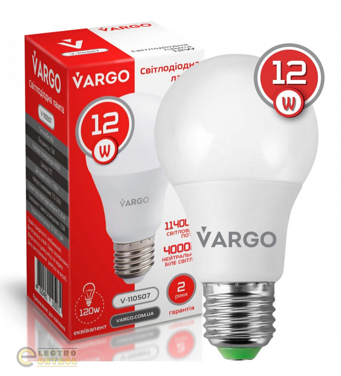 LED лампа VARGO A60 12W E27 1140lm 4000K (V-110507)