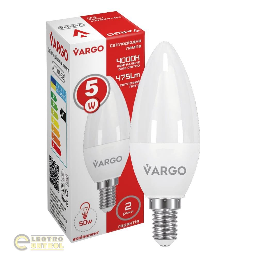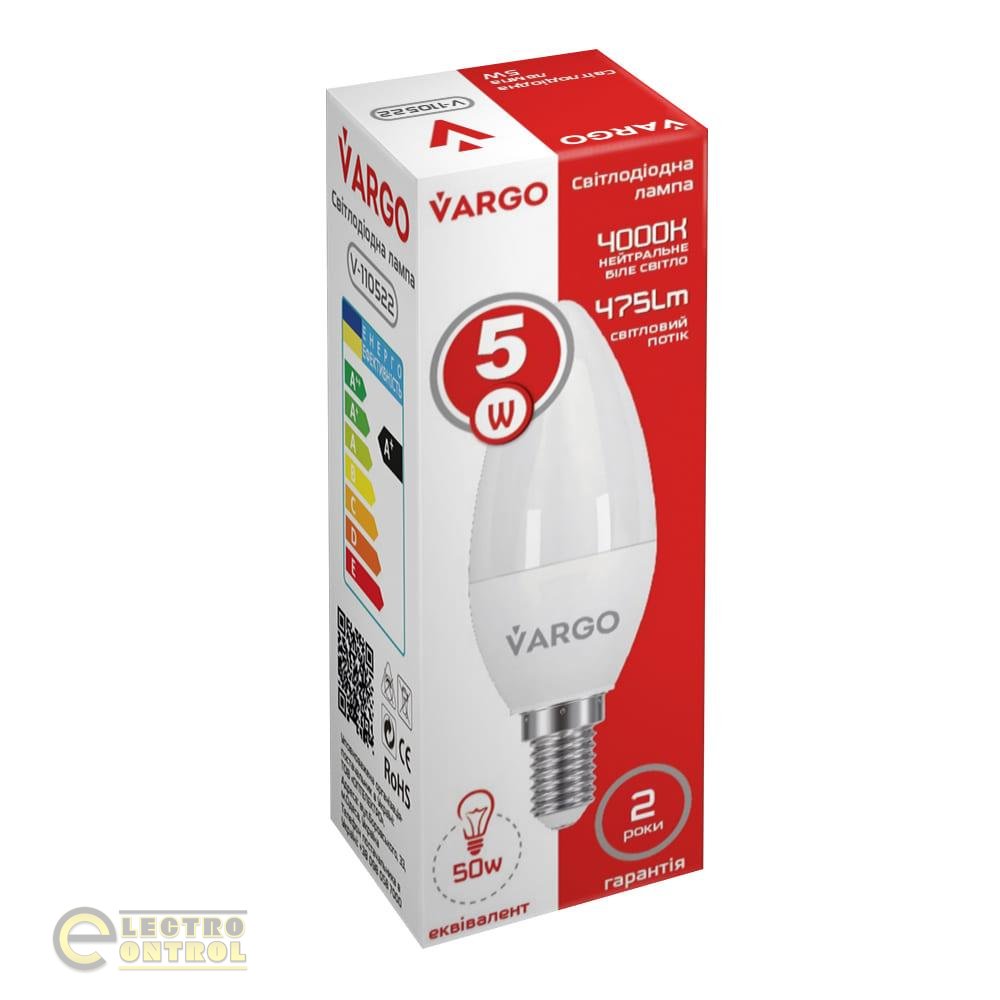 LED лампа VARGO C37 5W E14 665lm 4000K (V-110522) має низьку споживану потужність 5W, що дозволяє економити електроенергію та знижує навантаження на мережу. Також вона виготовлена з високоякісних матеріалів, що гарантує довговічність та надійність використання.