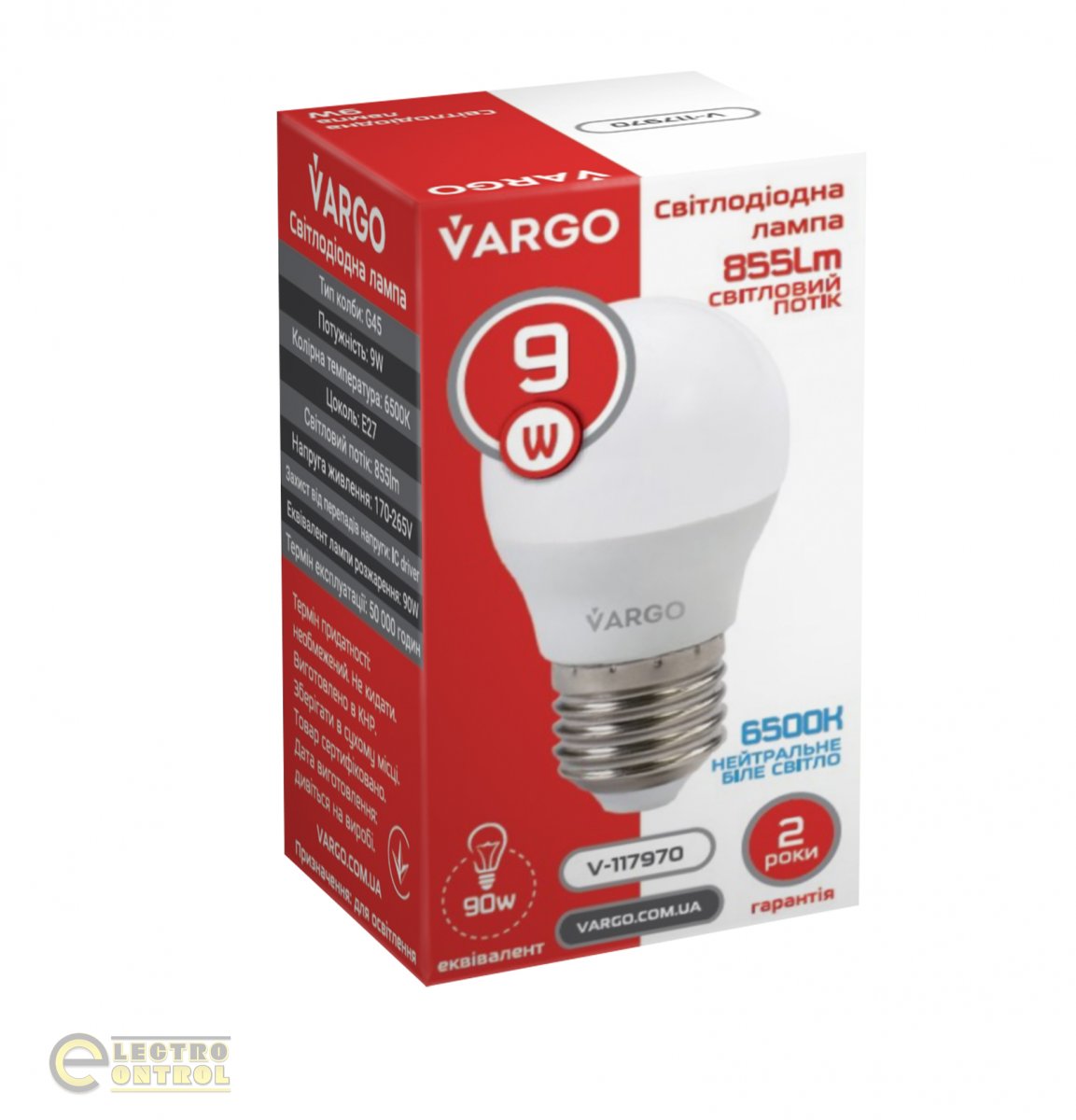 LED лампа VARGO G45 9W E27 855lm 6000K 117970