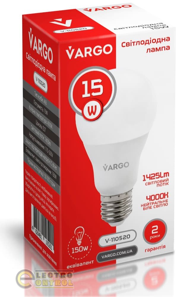 LED лампа VARGO A65 15W E27 1425lm 4000K 110520