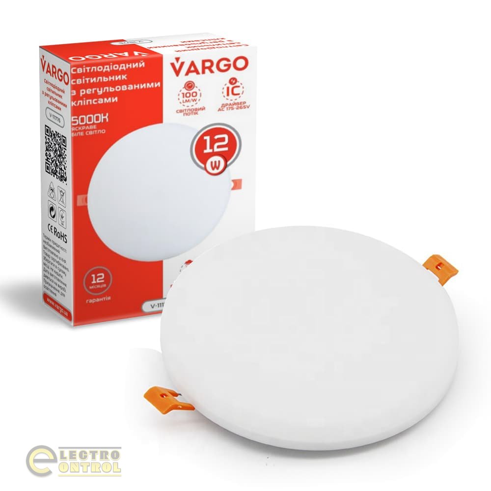 Светодиодный светильник VARGO круг 12W 5000K 1200lm 175-265V с регулируемыми клипсами 50-70mm размер 85mm