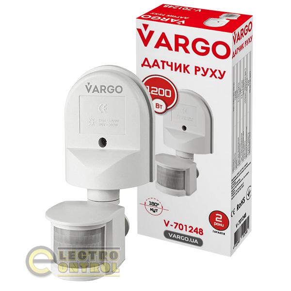Датчик движения 180° VARGO белый мощный автоматический для включения света