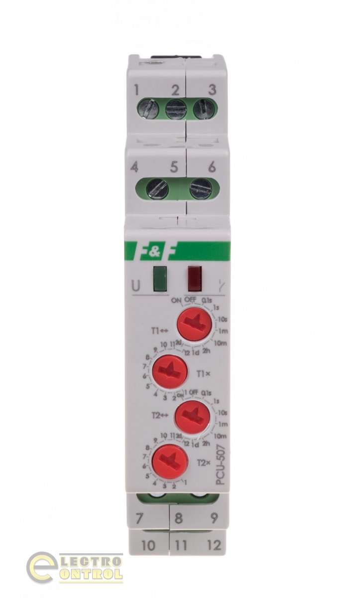Реле времени с установкой двух независимых диапазонов t1 и t2 (рабочее время и время перерыва). Реле времени используются для контроля времени в промышленных системах и системах бытовой автоматизации (например, вентиляция, отопление, освещение, сигнализация и т. д.).