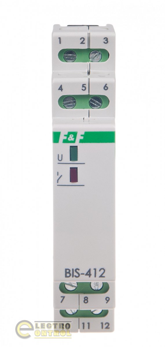 - BIS-412M-230 V - с памятью состояния контактов. После пропадания напряжения питания реле, и повторном появлении напряжения питания, контакты реле вернутся в положение в котором они были до пропадания напряжения питания;