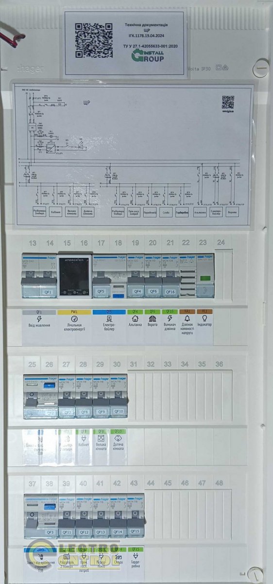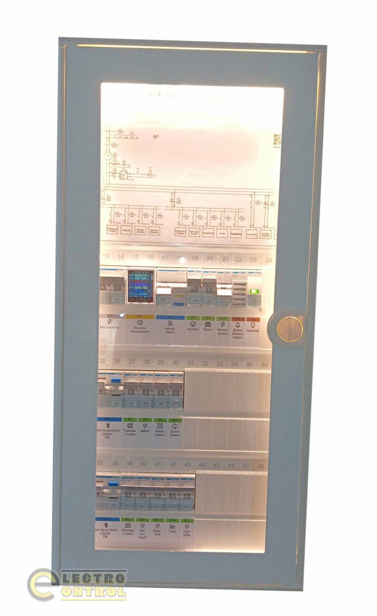 Цена на сайте указана на щит распределительный для частного дома с использованием оборудования производителя Hager (Германия). Щит рассчитан на 48(56) модулей. Цена на данный щит будет зависеть от типа монтажа распределительного щита: открытый или закрытый, количества модулей, типа напряжения питания, производителя комплектующих для щита.