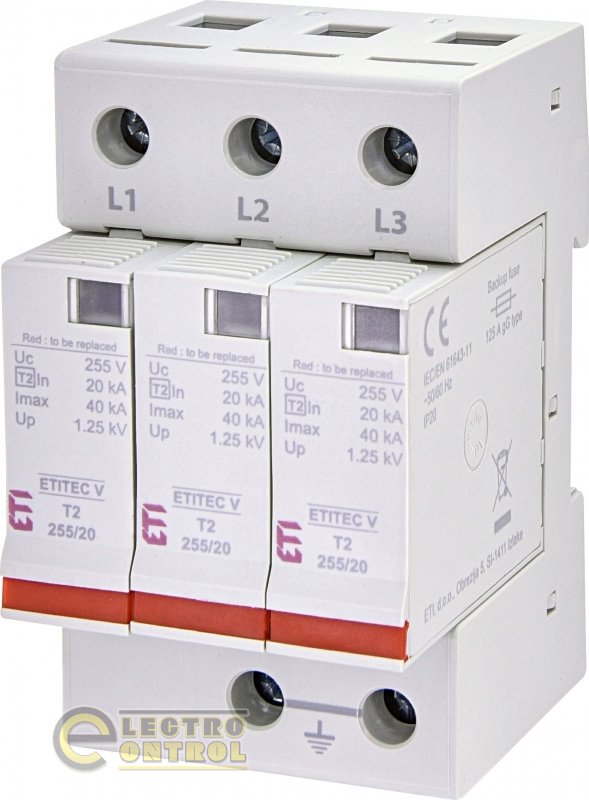 - Ограничитель перенапряжения ETI ETITEC V T2 255/20 3+0 RC 2442961-
