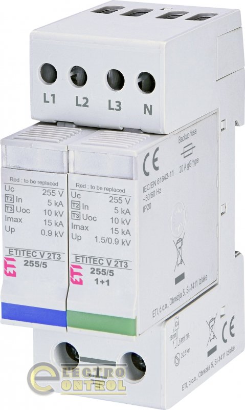 - Ограничитель перенапряжения ETI ETITEC V 2T3 255/5 3+1 RC 2442979-