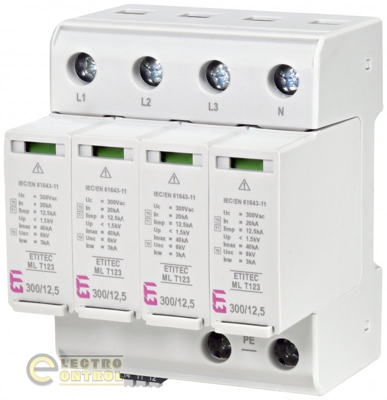 Ограничитель перенапряжения ETI ETITEC ML T123 300/12.5 4+0 4p TNC-S RC 2440668